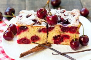 - Poți să presari zahăr pudră deasupra prăjiturii cu visine înainte de servire, dacă dorești.